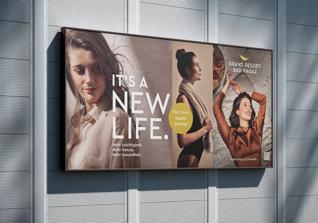 Im Grand Resort Bad Ragaz erfahren die Gäste mehr Genuss, mehr Gesundheit, mehr Leichtigkeit, so dass sie sich nach ihrem Aufenthalt wie neugeboren fühlen. Dieses Gefühl nach einem buchstäblich neuem Leben übersetzten wir in eine crossmediale Imagekampagne für das Luxusresort. Neben Kreation und Realisation enthielt diese auch eine umfassende Mediastrategie.