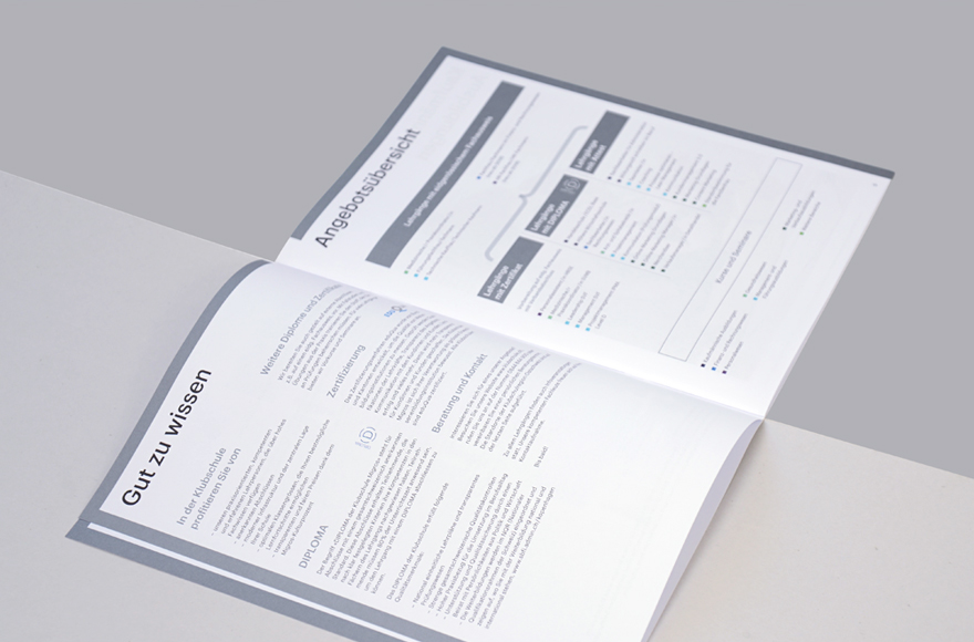 Genauso praxisorientiert wie die Kurse der Klubschule Migros sollten auch die fünf Angebotsbroschüren für die Region Ostschweiz konzipiert werden. Rembrand war für die Überarbeitung der Broschüren zuständig und verbesserte auf Basis des bestehenden Corporate Designs unter anderem die Leseführung und sorgte für eine klare, übersichtliche Struktur.
