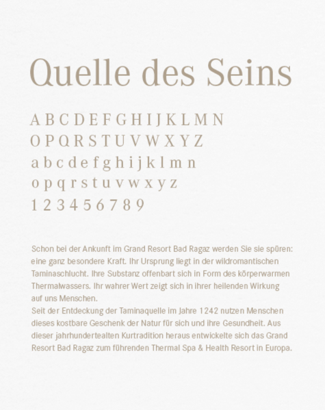 Seit mehr als sechs Jahren prägt Rembrand den Auftritt des «Leading Wellbeing & Health Resort in Europe». Rembrand hat die Marke durch Emotionalisierung gestärkt, die Positionierung mit Fokus auf Gesundheit und Medizin deutlich geschärft. Dazu gehörte ein Redesign mit neuen grafischen Elementen, die gesamte Kommunikation, inhaltlich und gestalterisch überarbeitet sowie eine von Sitegeist konzipierte und realisierte Website. Der neue Auftritt im modernen Design vermittelt eindrucksvoll die Vorzüge des Luxushotels.