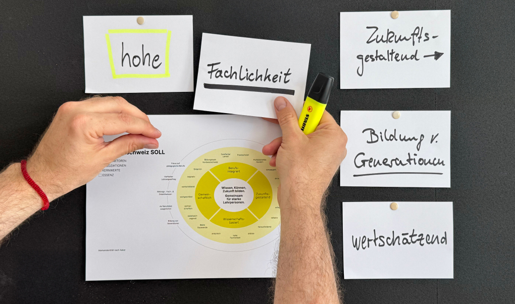 Bei der FHNW haben wir bereits mit unserem Pitch voll ins Schwarze getroffen. Denn die Botschaften, die wir während des Branding Prozesses formulierten, wurden später 1:1 als Claim genutzt. Aber der Reihe nach: Die PH FHNW benötigte mehr Offensive, um ihre wissenschafts- und praxisorientierte Ausbildung gen innen und aussen zu kommunizieren. In einem intensiven Brandingprozess haben wir in Workshops ihre Markenwerte geschärft und in Markenversprechen umgewandelt.